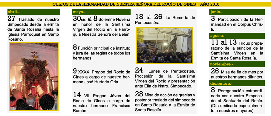 Todos los sábados del año, Santo Rosario ante nuestro Simpecado (Ermita de Santa Rosalía, exepto el sábado día 8 de mayo por celebración de nuestro Novena).
